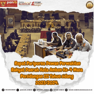 (Senin,12 Agustus 2024) Rapat Paripurna Dewan Perwakilan Rakyat Daerah Kota Ambon Ke-4 Masa Persidangan III Tahun sidang 2023/2024