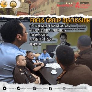 Kepala Kejaksaan Negeri Ambon Bapak Adhryansah, S.H., M.H. di dampingi Kepala Seksi Tindak Pidana Khusus, Bapak Amri Bayakta, S.H., bersama Kepala Cabang Kejaksaan Negeri Ambon di Saparua Bapak Achmad Bhirawa Bissawab, S.H., M.H. dan Kepala Cabang Kejaksaan Negeri Ambon di Banda Neira, Bapak Ilma Ardi Riyadi, S.H. Mengikuti Focus Group Discussion (FGD) dengan tema “Optimalisasi